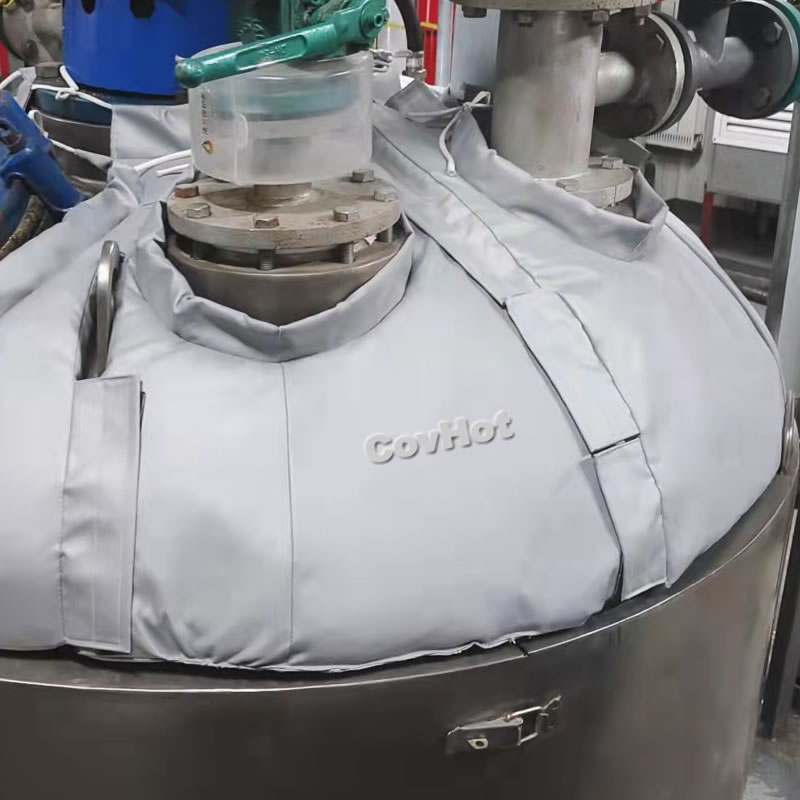 因?yàn)榉忸^部位外形相對復(fù)雜,而且可能后續(xù)還有拆卸檢修需求,因此封頭部位的保溫就非常重要,柔性可拆卸封頭保溫套通過對封頭的具體形狀及其使用環(huán)境,精心設(shè)計(jì),測繪后,通過特殊工藝制作而成。通過對封頭部位合理的保溫,可以讓設(shè)備整體和工廠環(huán)境保持舒適的溫度。