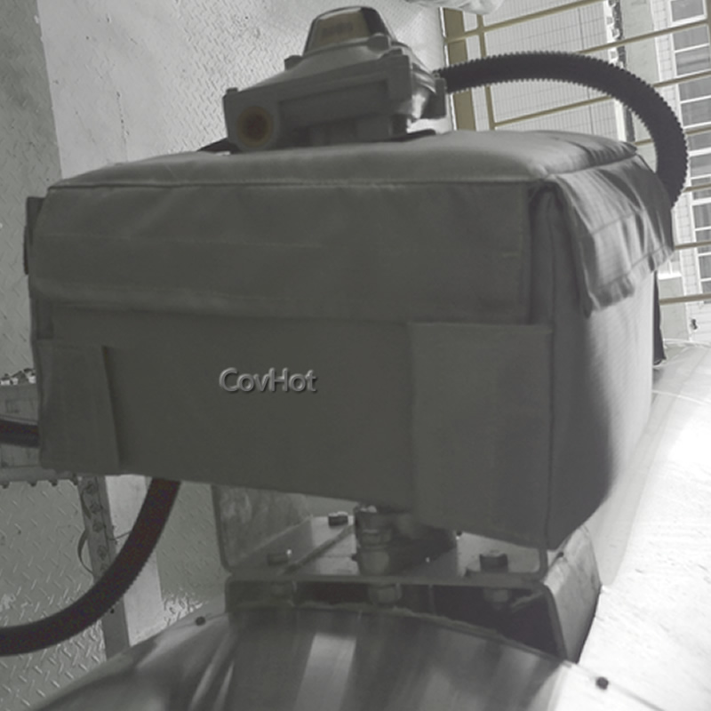 柔性防火罩特為所需保護的零件、執行器、閥門、儲槽和管道的形狀而專門設計和量身定做。可為控制器、閥桿、鋼框架和按鈕建立凹進處和孔洞;防火罩為特殊定制,可根據客戶需求在所需位置開設穿過電源線的通孔,且在安裝前可隨時進行修改。防火罩外觀可采用不同顏色織物制作,以便在系統不同區域內區分自動操作和方便操作人員在緊急狀況下操作。